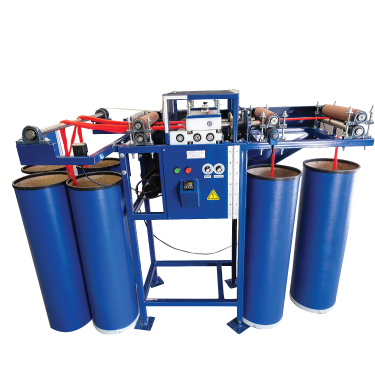 The function of the B.M.M. Draw Frame is to take rovings from the Carder and create a roving, absolutly consistent in size over its entire length. It also further alligns the fibers to parallel, and makes a stronger roving for ease of processing or packaging. You can make the roving bigger or smaller at this stage. The draw frame blends multiple rovings into one fiber stream. Blending at this stage can create very unique end products.